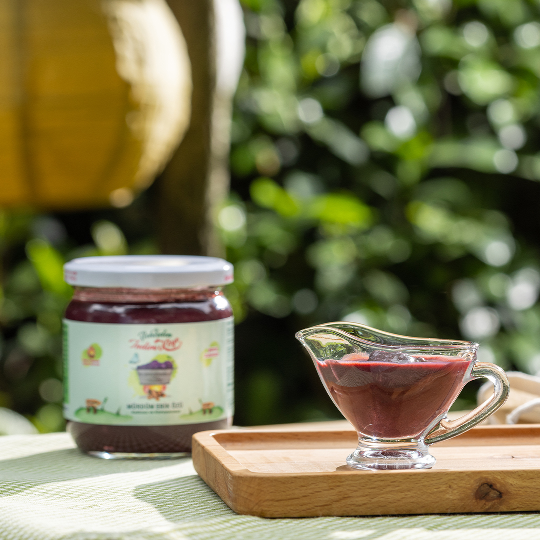 • Geleneksel meyve özü ve marmelat yöntemleri ile Tarım Bakanlığı onaylı üretim atölyemizde hazırladığımız mürdüm erik özümüzde kullandığımız tüm eriklerimizi özenle yetiştirdiğimiz bahçemizden, mevsiminde kendimiz topladık.